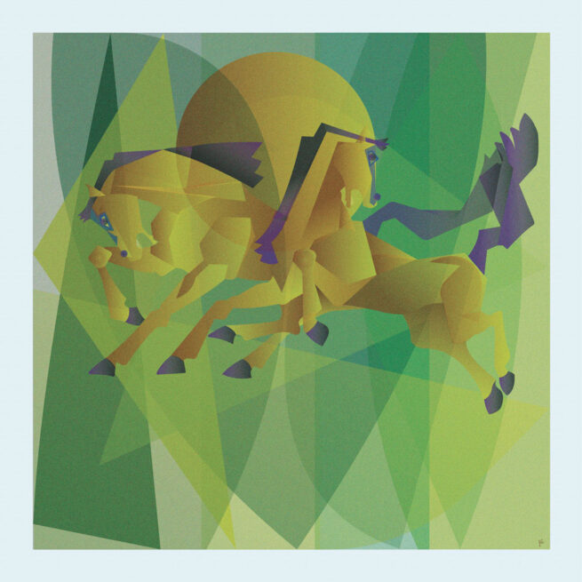 Goldene Pferde, 90 x 90 cm, Acryl auf Leinen