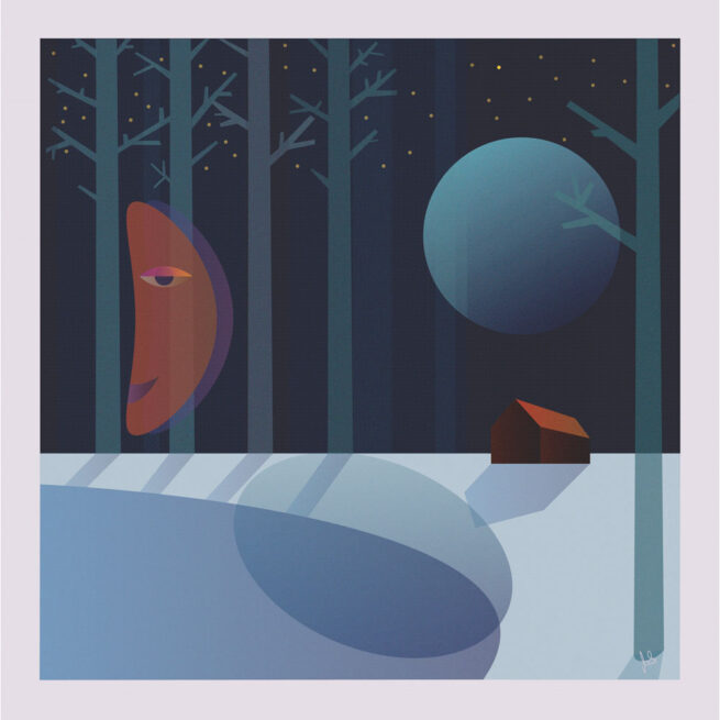 Skiing, Acryl auf Leinen, 90 x 90 cm