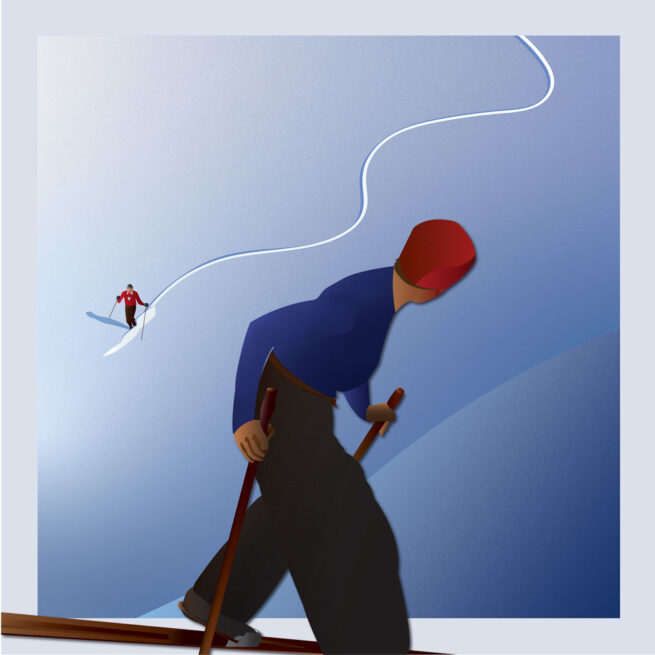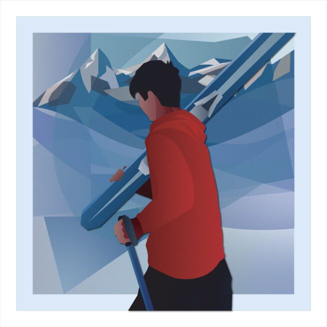 Schifahrer, Acryl auf Leinen, 90 x 90 cm