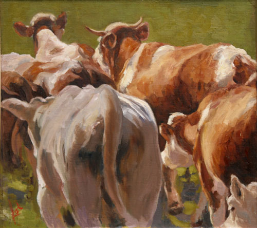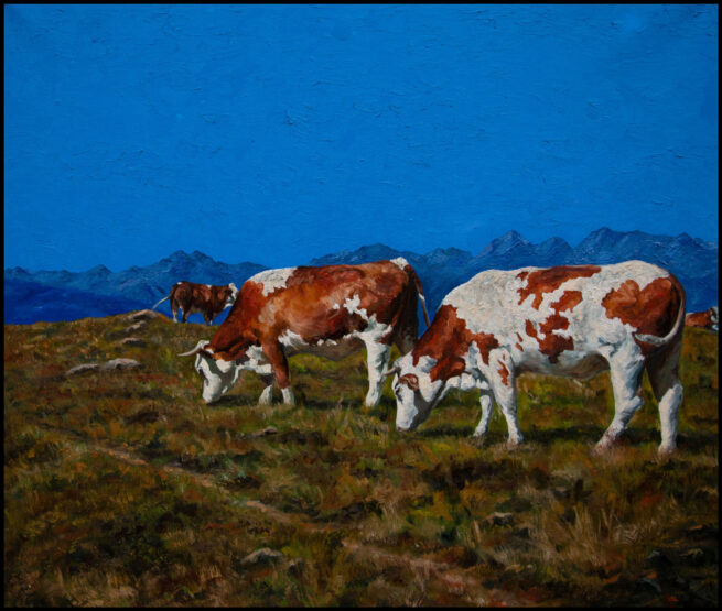Kühe, Öl auf Leinen, 100 x 100 cm