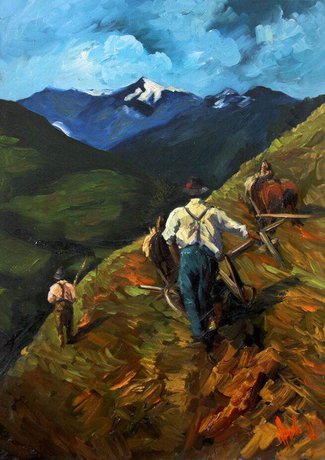 Almbauern, Öl auf Leinen, 50 x 70 cm