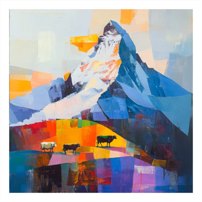 Matterhorn, Mixed Media auf Leinen/Holz/Epoxy, 100 x 100 cm