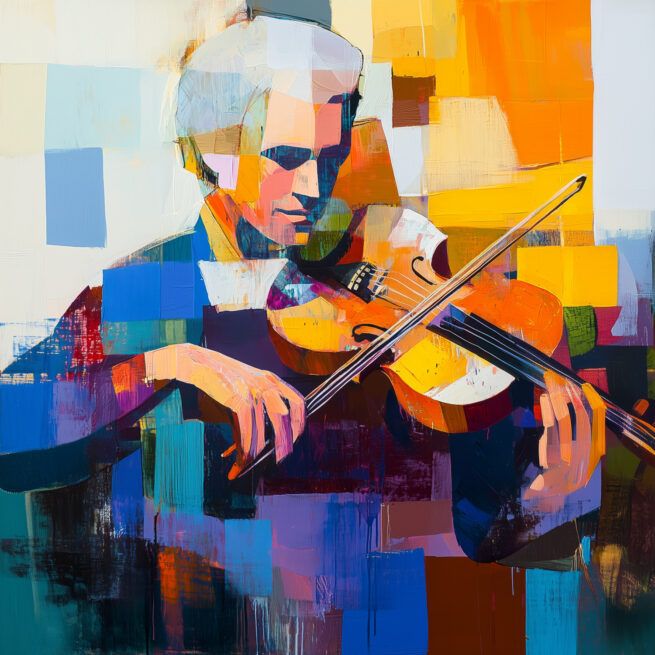Mozart, Mixed Media auf Leinen/Holz/Epoxy, 100 x 100 cm