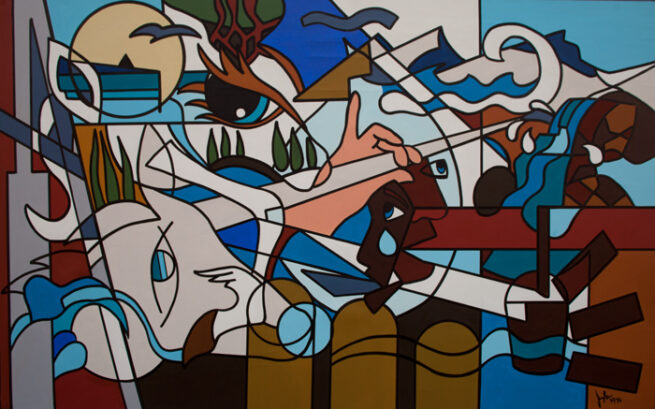 Sonnen Wassergott, Acryl auf Leinen, 80 x 100 cm