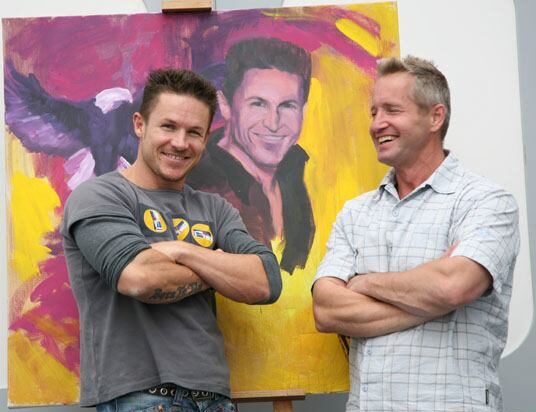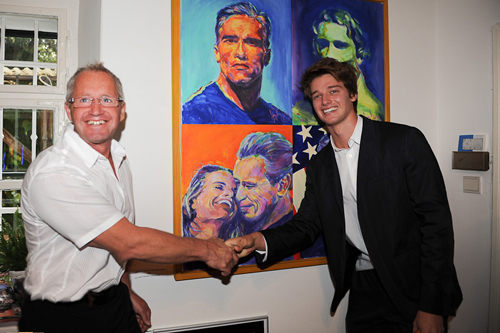 Patrick Schwarzenegger vor dem Gemälde seines Vaters im Schwarzenegger Museum in Thal bei Graz