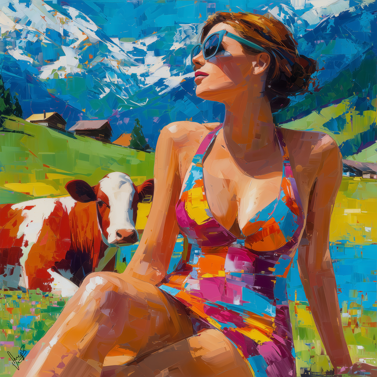 Almgirl, Acryl auf Leinen, 100 x 100 cm