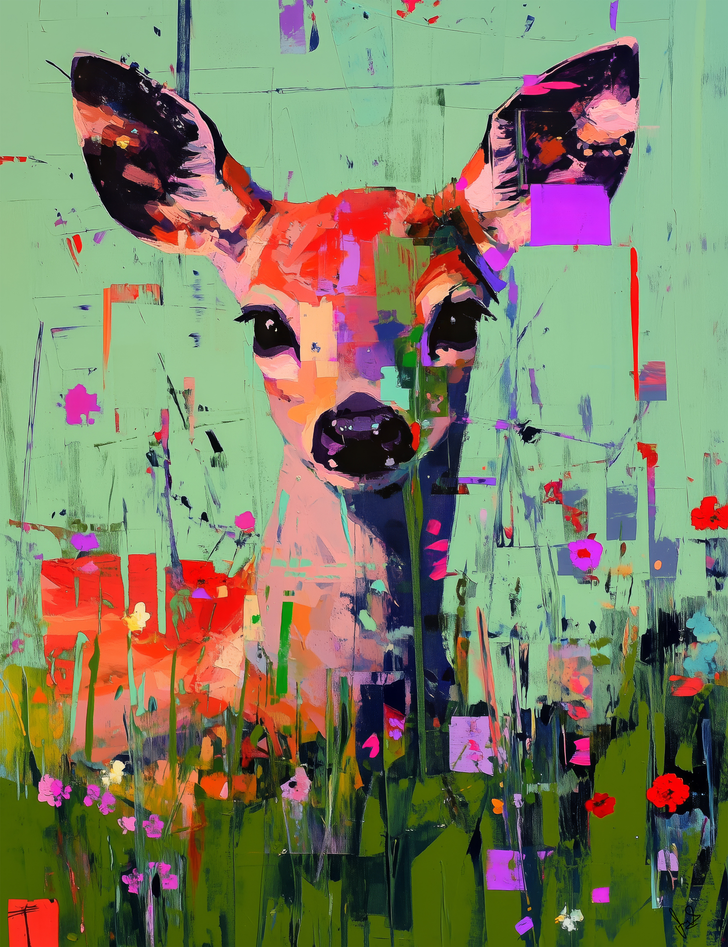 Reh, Mixed Media auf Leinen/Holz/Epoxy, 100 x 130 cm