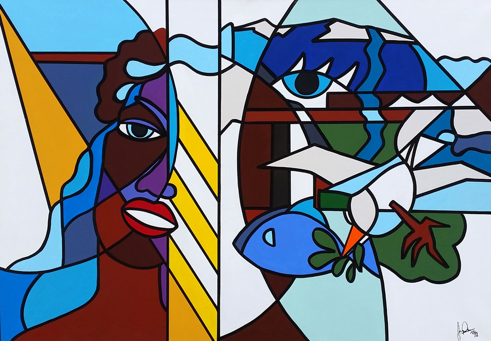 Sonnen Wassergott, Acryl auf Leinen, 80 x 100 cm